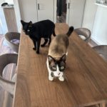 2匹のお気に入りがダイニングテーブルになっている!